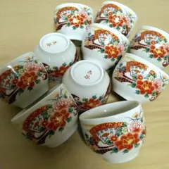 新品 九谷焼 清峰窯 古九谷風 牡丹に薔薇 ペア湯呑み 組湯呑み 2客