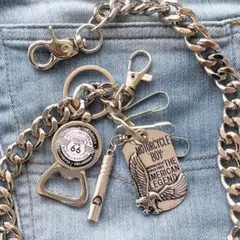 ウォレットチェーン 鍵笛付き アメカジ シルバー バイカー カラビナ