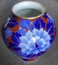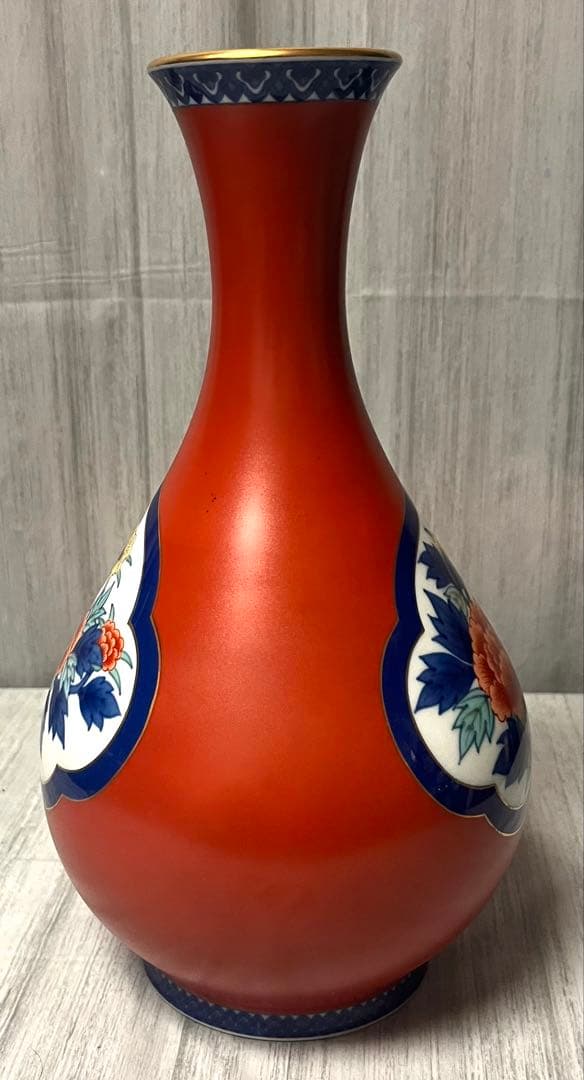 オレンジ色の花柄装飾が施された香蘭社の陶器製花瓶。実家に保管されていたものです。香蘭社では珍しい色です。