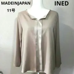 柔らかなくすみピンク色の長袖ブラウス、絞り紐付きの袖口とファスナー付きのバックデザインが特徴。