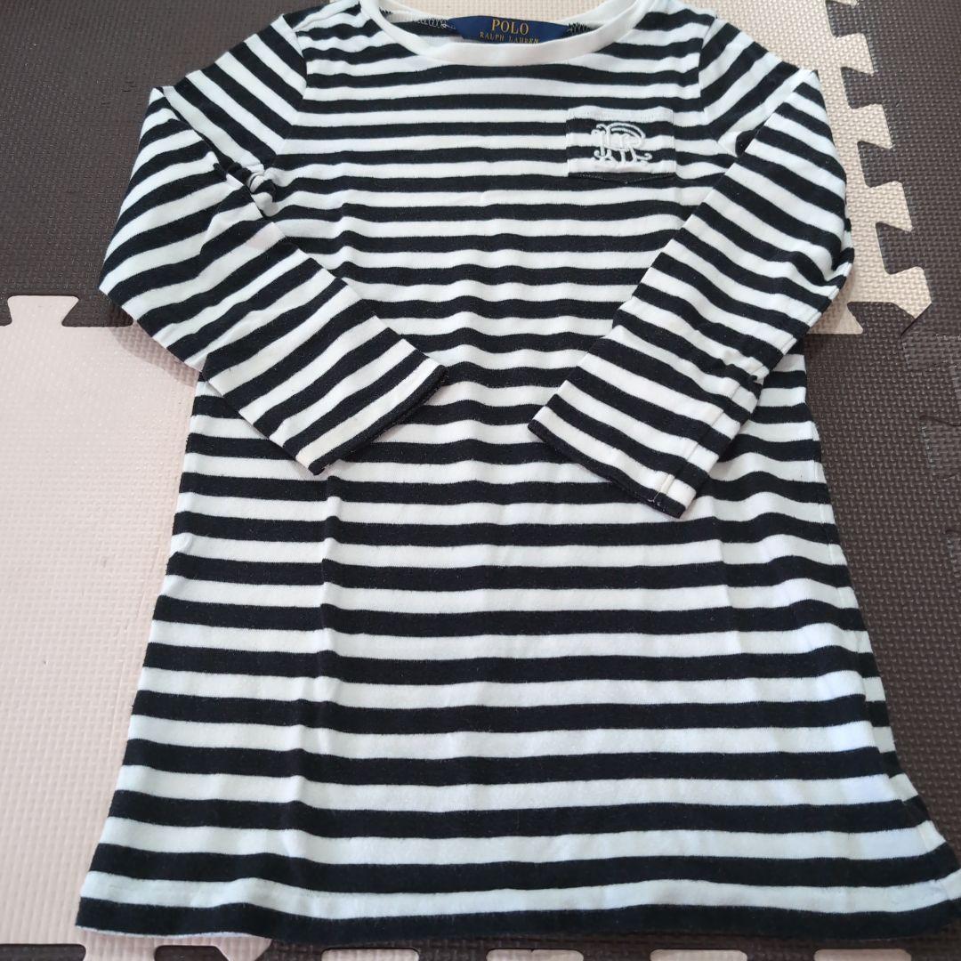 POLO Ralph Lauren 長袖ワンピース 黒白ストライプ