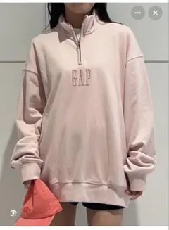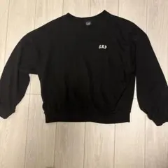 ダークグレーのGAPクルーネックスウェット、1960年デザインの大きなロゴプリント付き。