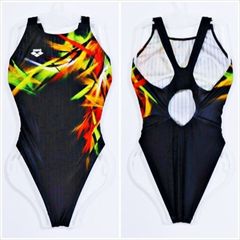 鮮やかなグラデーションカラーのアリーナarena製競泳水着、バッククロスデザインでフィット感抜群。