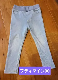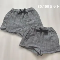 ベージュと茶色のチェック柄のパンツ、サイズ90cmで快適なウエストゴム付き。