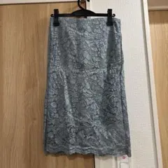 GU レースタイトスカート S ブルー 総柄 膝丈 ジーユー