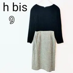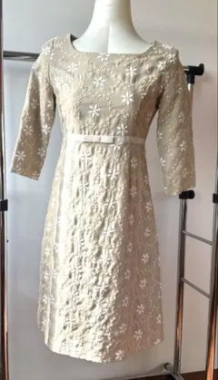 パッチワーク風の赤系ニットワンピース、長袖デザイン。