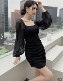 オフショルダー 長袖ミニドレス SHEIN ピンク キラキラ