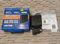 NEC製の無線LANルーター、電源アダプターと説明書付き。
