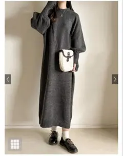 GRL リボンベルト付きスクエアネックニットワンピース[mb1179] M