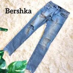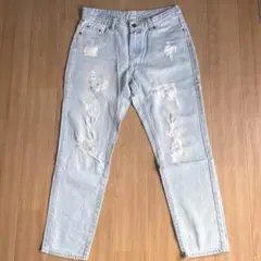 ダメージジーンズ デニム ブルー ストレッチ タイト【M】美脚 細見え