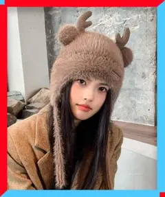 キティちゃん ニット帽 豹柄 レオパード柄 グレー 耳付き