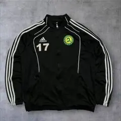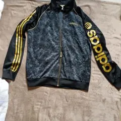フード付きの黒いadidasジャージ、未使用タグ付き。