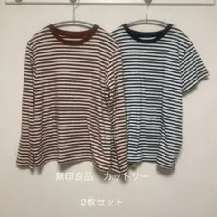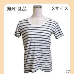 白とグレーのストライプデザインの半袖Tシャツ、綿100%で快適な着心地。