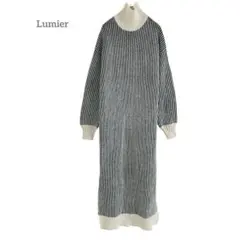Vネック ニットワンピース 裏地付き ゆったりシルエット S 秋冬 ネイビー