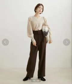 美品 Vis ライムグリーン Vネック 長袖ニットセーター. M149