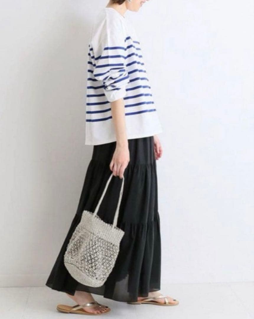 SLOBE IENAトレンドのティアードデザインのスカート。キュプラ混の光沢感と透け感が今年らしい一着。エレガントになりすぎないようバランスにもこだわりました。ギャザーがたっぷり入っていてもおなか周りはすっきり見えるようなシルエットも魅力◎どんなトップスとも合わせやすく、オシャレに決まるスカートは必見です!