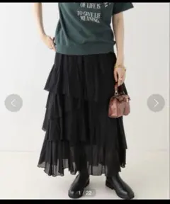【美品】SLOBE IENA☆Cu/Cワッシャーボイルティアードスカート ブラック