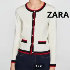 【ザラ】長袖 ニットカーディガン グリーン パールボタン ショート丈