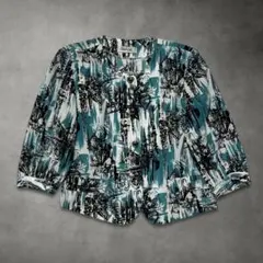 一点物 長袖総柄シャツ 鳥柄 バックボタン カーキ 個性的 モード系 アート系