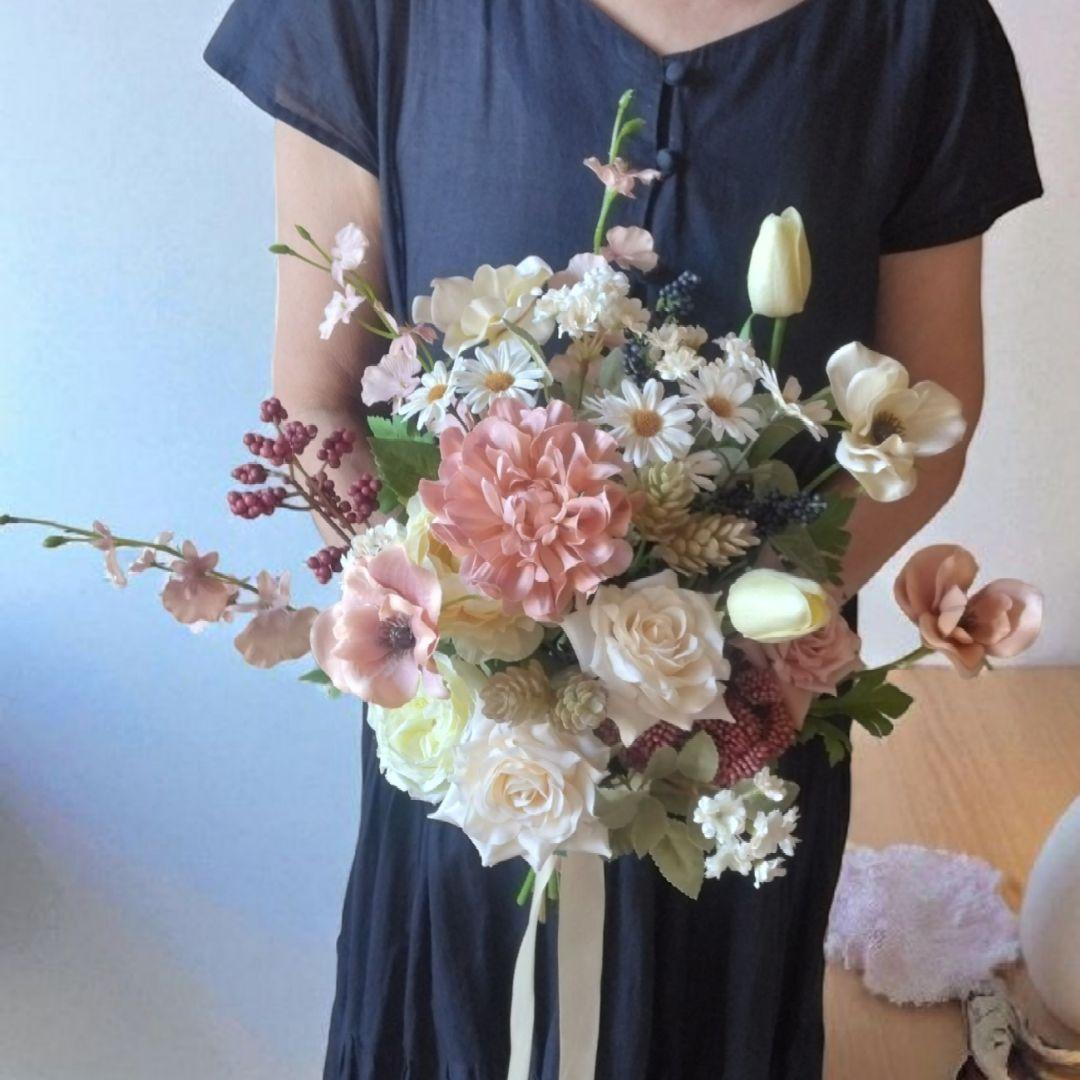 素材は上質なアーティフィシャルフラワー*のみの作成にございますので、持ち運び時の花折れや散りなどのご心配は少ないかと思われます♪