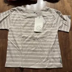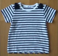 バルーンスリーブ Tシャツ 白 青ストライプ