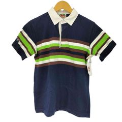 バーバリアン ボーダー 長袖 ラガーシャツ XL グレー×ネイビー×ブラウン BARBARIAN ポロシャツ メンズ