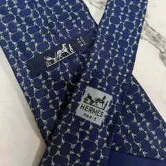 エルメス HERMES アイボリー ネイビー リングパターン ネクタイ