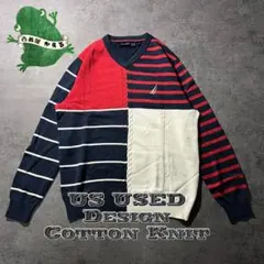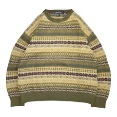 90s★nautica★ノーティカ★総柄ニット★万国旗★生成り×紺×黄×赤★ML