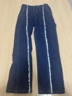 Ray Cassin フリンジハイウエストデニムパンツ ブルー M