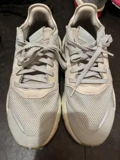 adidasのスーパースターです。ホワイトを基調に、つま先とソールはイエロー、ヒール部分にネイビーのアクセントがあります。