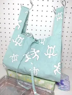 ペイズリー柄の布製エコバッグ、ネイビーとグレーの配色でスタイリッシュ。