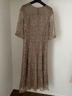 袖部分は繊細なレース素材で、二の腕もさりげなくカバーしてくれる七分袖タイプ。ウエストは切替&プリーツデザインでスタイルアップして見え、ふんわり揺れるシルエットがとても綺麗です。