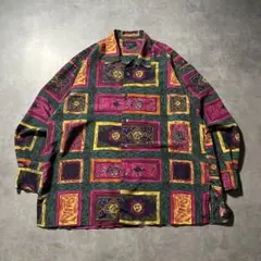 値下【VINTAGE】90s スクエアドット 総柄 ビンテージシャツ レトロ古着