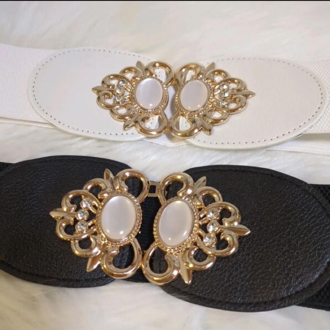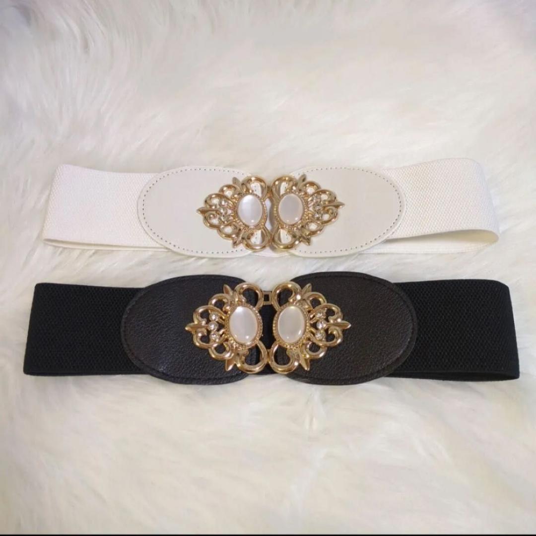 ベルト 2色セット 黒白 ウエストベルト ゴムベルト ハイウエスト