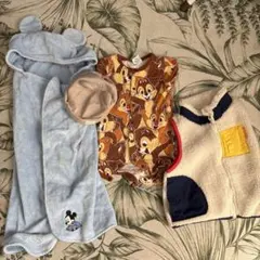 ミッキーマウスのデザインが特徴のBABYDOLLロンパース、スナップボタン付きで着脱簡単。