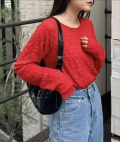 93%レーヨンと7%スパンデックスの素材で、快適な着心地の赤い長袖トップス。