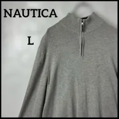 グレーの100%コットン製ニットセーター、NAUTICAのロゴ付き。