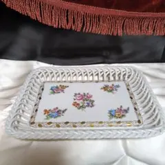 見ているだけでもうっとりするほど、絶妙な楕円のカーブを描く愛らしいボンボニエール。トップに添えられた淡いオレンジのバラが繊細で、描かれた蝶や花々を引き立てています。クリスマスプレゼントにも。