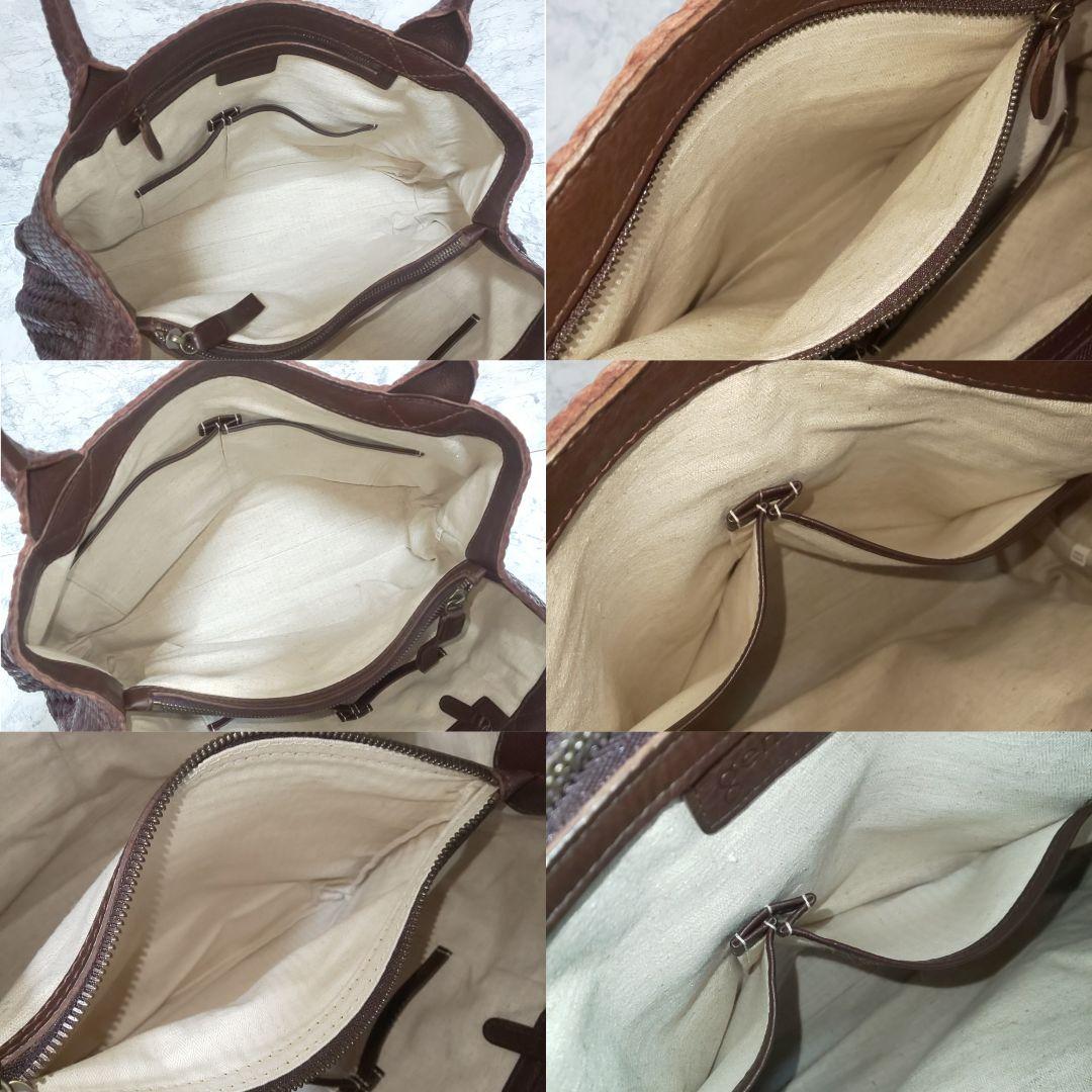 【極美品】genten ゲンテン トラフォロ 編み込みトートバッグ ハンドバッグ イントレッチオ メッシュ 山羊革 ゴートレザー×キャンバス ダークブラウンです♪
