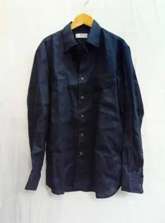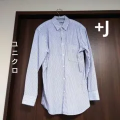 ユニクロプラスJ メンズL オーバーサイズスタンドカラー ストライプシャツ