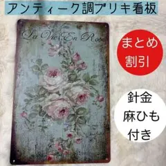 少女とバラ ブリキ風 看板 ガーデニング アンティーク調 園芸 薔薇 インテリア
