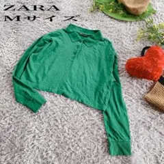 ZARA ホワイト 長袖 クロップドポロシャツ