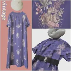 【レア】昭和レトロ ワンピース サイケ 総柄 ラスタカラー 黒 サイズ9 ヴィンテージ ゆったり エレガント 古着 匿名配送