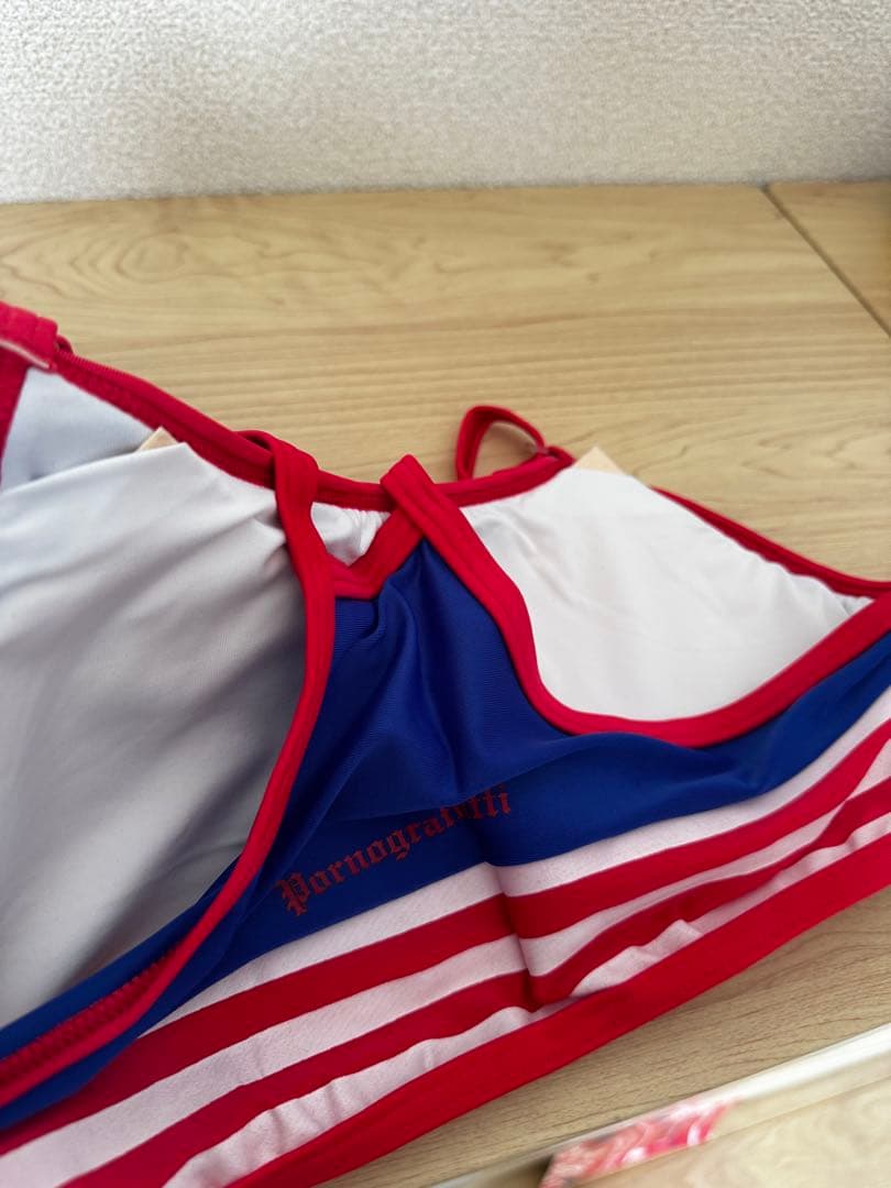 左胸、ショートパンツの左ももに船のロゴマーク、背中に「PornoGraffitti」、ビキニパンツの両尻に「PG」の文字がプリントされてます。