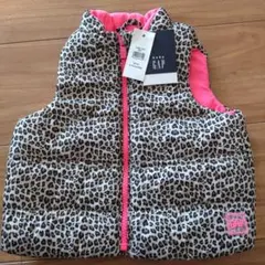 鮮やかな青色のGAPダウンベスト、キルティングデザインでパッチ付き。