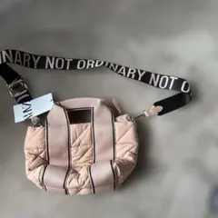 シンプルなデザインのグレーのショルダーバッグ、調整可能なストラップとゴールドの金具が特徴。