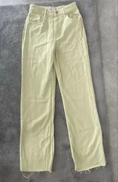 シンプルなデザインの裏フリース付き ブルーストレートデニム、4ポケット付きで実用的。