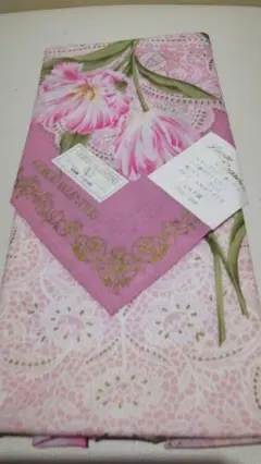ハイビスカス柄のタオル生地ハンカチ タグ付き。