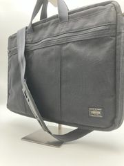 布製の黒いビジネスバッグ、上下ジッパー付きポケットあり。