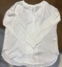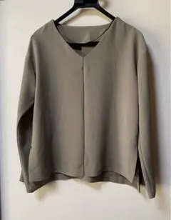 Vネックデザインのベージュシャツ、ボタン付きでカジュアルなスタイルに最適。